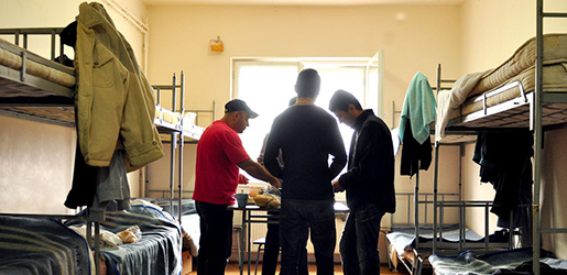 Solicitanţi de azil şi colegi de cameră la centrul de cazare şi proceduri Timişoara, iau micul dejun împreună. România acordă solicitanţilor de azil cazare şi o alocaţie de aproape un Euro pe zi. Cei fără surse suplimentare de venit se străduiesc din greu să-şi acopere cheltuielile pentru hrană şi alte nevoi.
