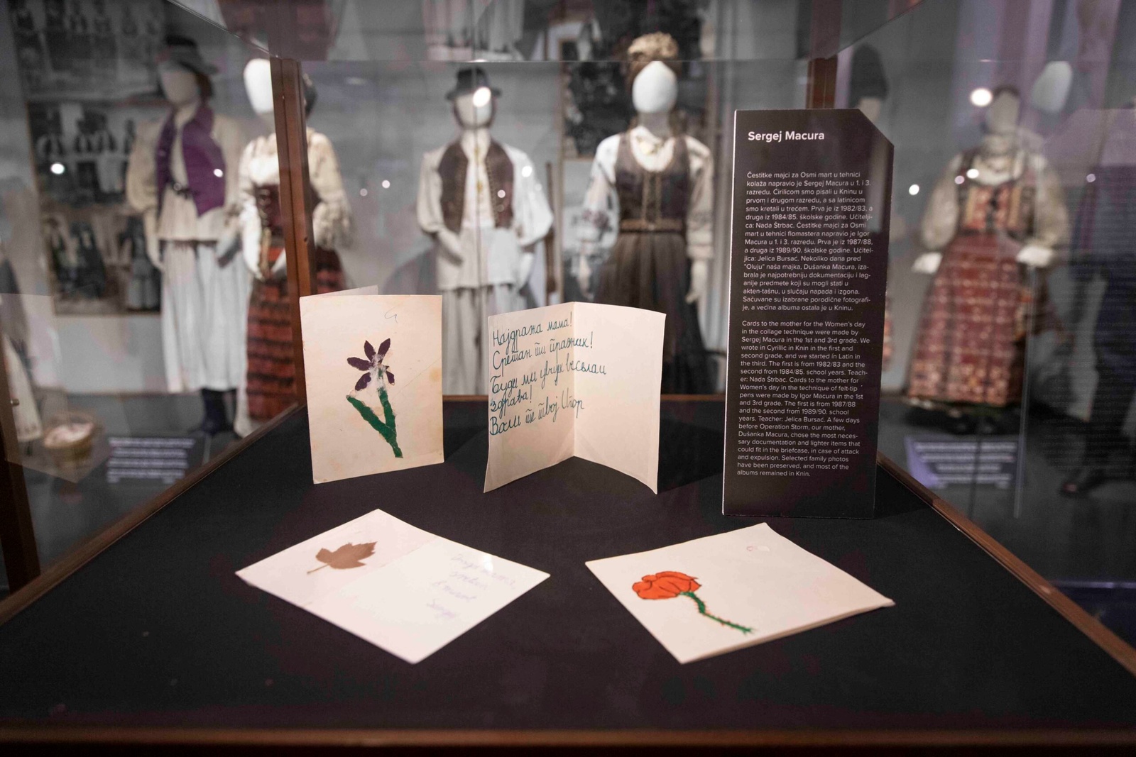 Refugees from former Yugoslavia, the Middle East and Africa, as well as those from Ukraine, responded to UNHCR’s call to lend us the actual objects that they had brought with them into their countries of destination. Hence, visitors to the exhibition will have a chance to see an ivory decorated prayer book and handmade cards for Women’s Day by former refugees from Croatia; a traditional costume and a dress for special occasions from Burundi; as well as Grandma’s perfume and a handmade glass from Ukraine.