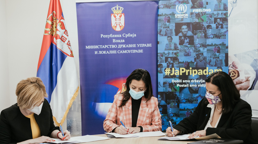 Ministarka državne uprave i lokalne samouprave Marija Obradović, zamenica Zaštitnika građana Jelena Stojanović i šefica Predstavništva Visokog komesarijata UN za izbeglice (UNHCR) Frančeska Boneli potpisale su danas treći po redu Sporazum o razumevanju, koji predviđa nastavak saradnje na polju iskorenjivanja apatridije u Srbiji.