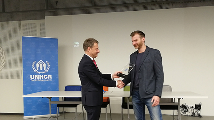 Na maloj svečanosti održanoj u Kući UN-a u Beogradu 14. marta, Hans Fridrih Šoder, šef Predstavništva Agencije UN za izbeglice u Srbiji, predao je Aleksandru Aleksiću nagradu Međunarodnog međuuniverzitetskog festivala kratkog filma 2018.