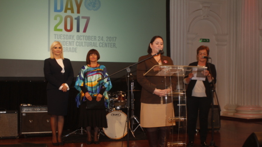 Podrška ekonomskom, socijanom i političkom razvoju Srbije, koju Tim Ujedinjenih Nacija u Srbiji pruža, utemeljena je na osnovnim vrednostima ove globalne organizacije. U narednim godinama, podrška Ujedinjenih nacija u Srbiji fokusiraće se na 17 globalno usvojenih, konkretnih ciljeva, stavljenih u kontekst prioriteta i reformi vezanih za procese pristupanja Evropskoj Uniji. Više desetina programa biće sprovedeno u Srbiji uz kontinuiranu zagovaračku i ekspertsku podršku, kao i iskustvo i dobre prakse koje Ujedinjene nacije donose u Srbiju iz zemalja širom sveta, istaknuto je na svečanosti povodom obeležavanja 72. godišnjice Ujedinjenih nacija (Dana Ujedinjenih nacija), koju su organizovali Vlada Republike Srbije i Tim Ujedinjenih nacija u Srbiji, u Studentskom kulturnom centru u Beogradu.