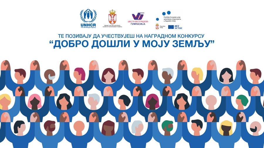 УНХЦР, Министарство просвете, науке и технолошког развоја, Шеста београдска гимназија и Делегација Европске уније у Републици Србији расписују конкурс за најбоље радове средњошколаца са територије Републике Србије на тему „Добро дошли у моју земљу“.