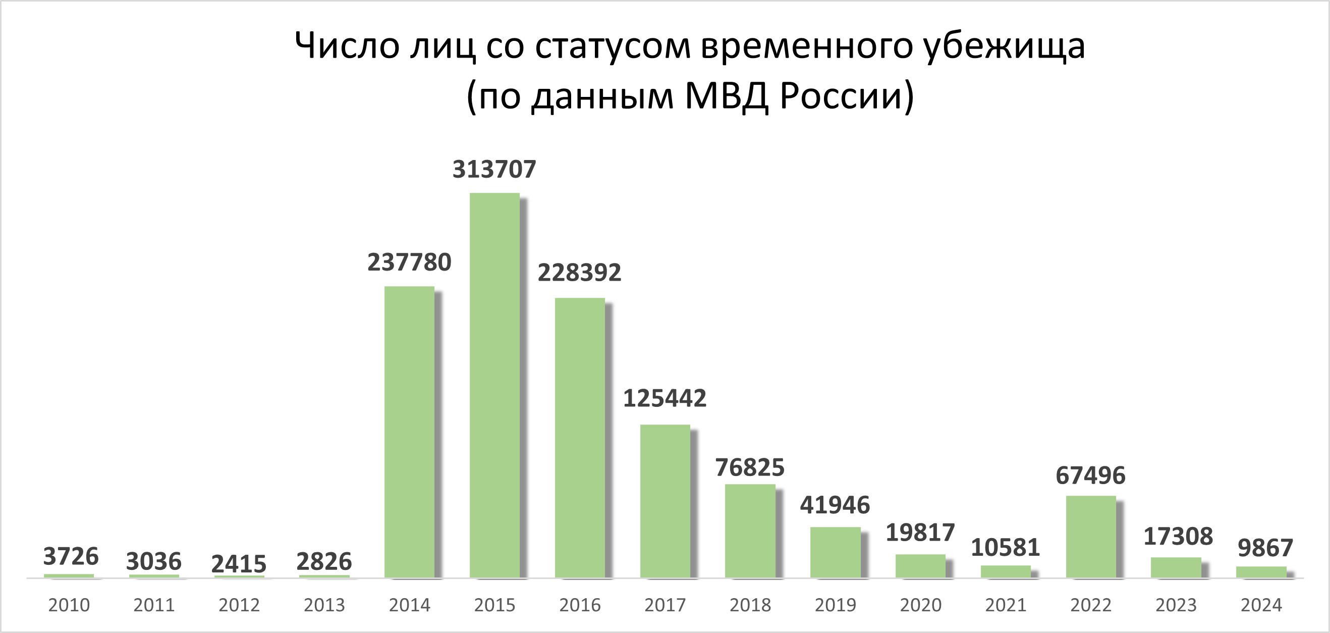• Число лиц, которым предоставлено временное убежище, состоящих на учете на конец отчетного периода — 9 867 (17 308 на 31 декабря 2023 года)