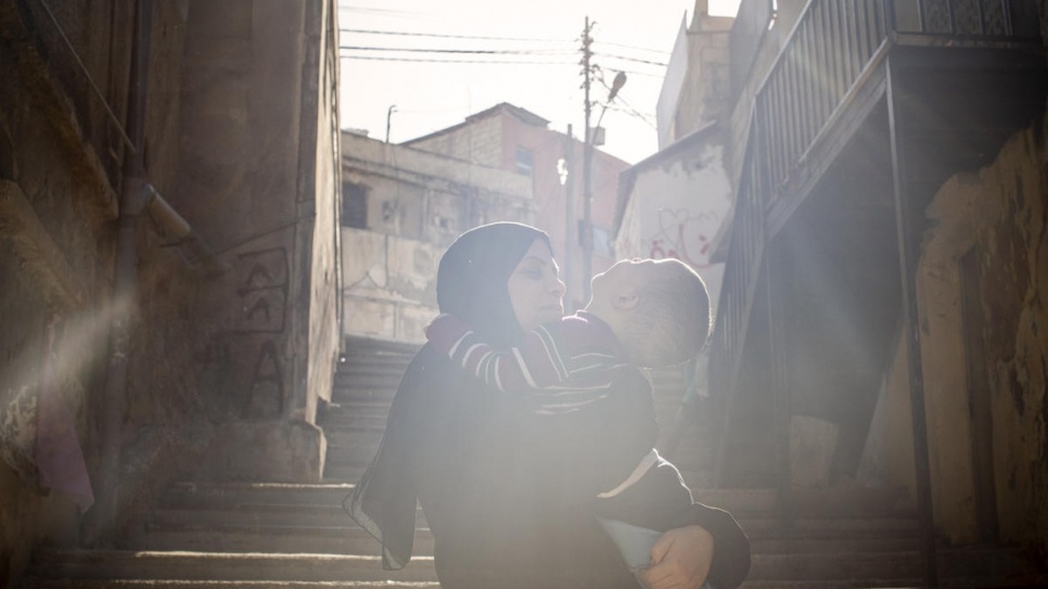 Фатима обнимает своего младшего сына Ибрагима © УВКБ ООН / Диего Ибарра Санчес