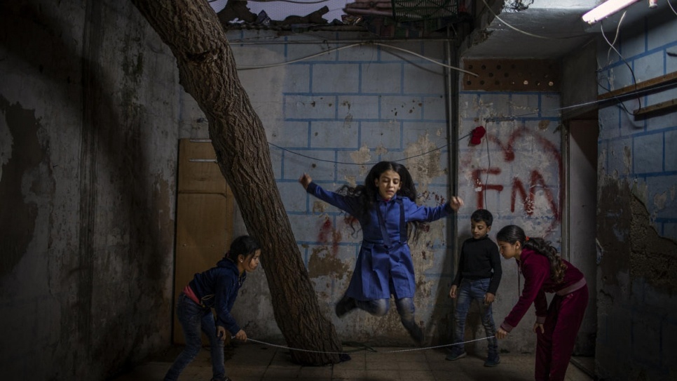 Наамат прыгает через скакалку с соседскими детьми © УВКБ ООН / Диего Ибарра Санчес