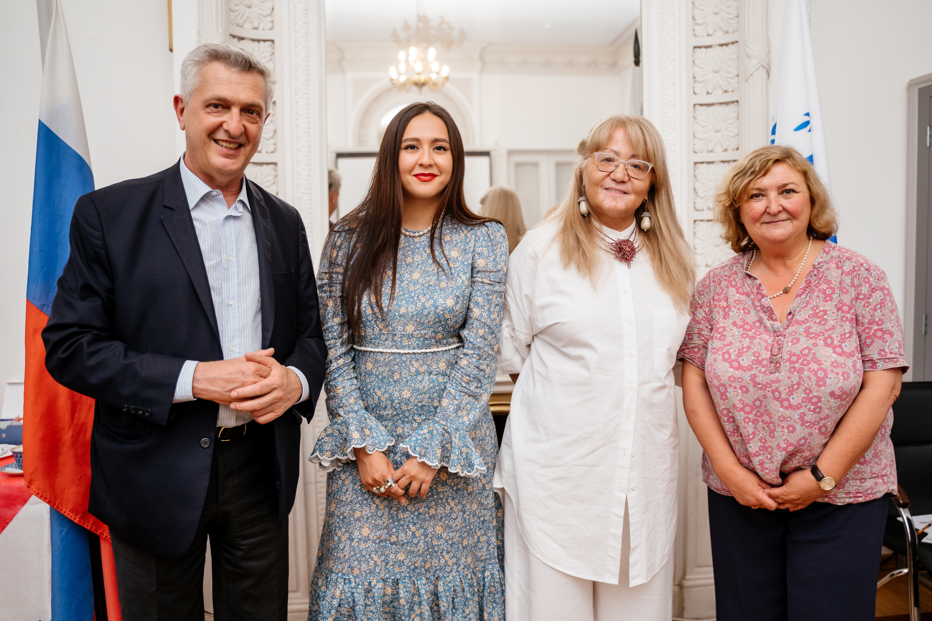 Посол доброй воли УВКБ ООН Манижа, мама и по совместительству продюсер Манижи Надежда Усманова на встрече с Верховным комиссаром ООН по делам беженцев Филиппо Гранди и Директором европейского бюро УВКБ ООН Паскаль Моро Фото: Руслан Альтимиров
