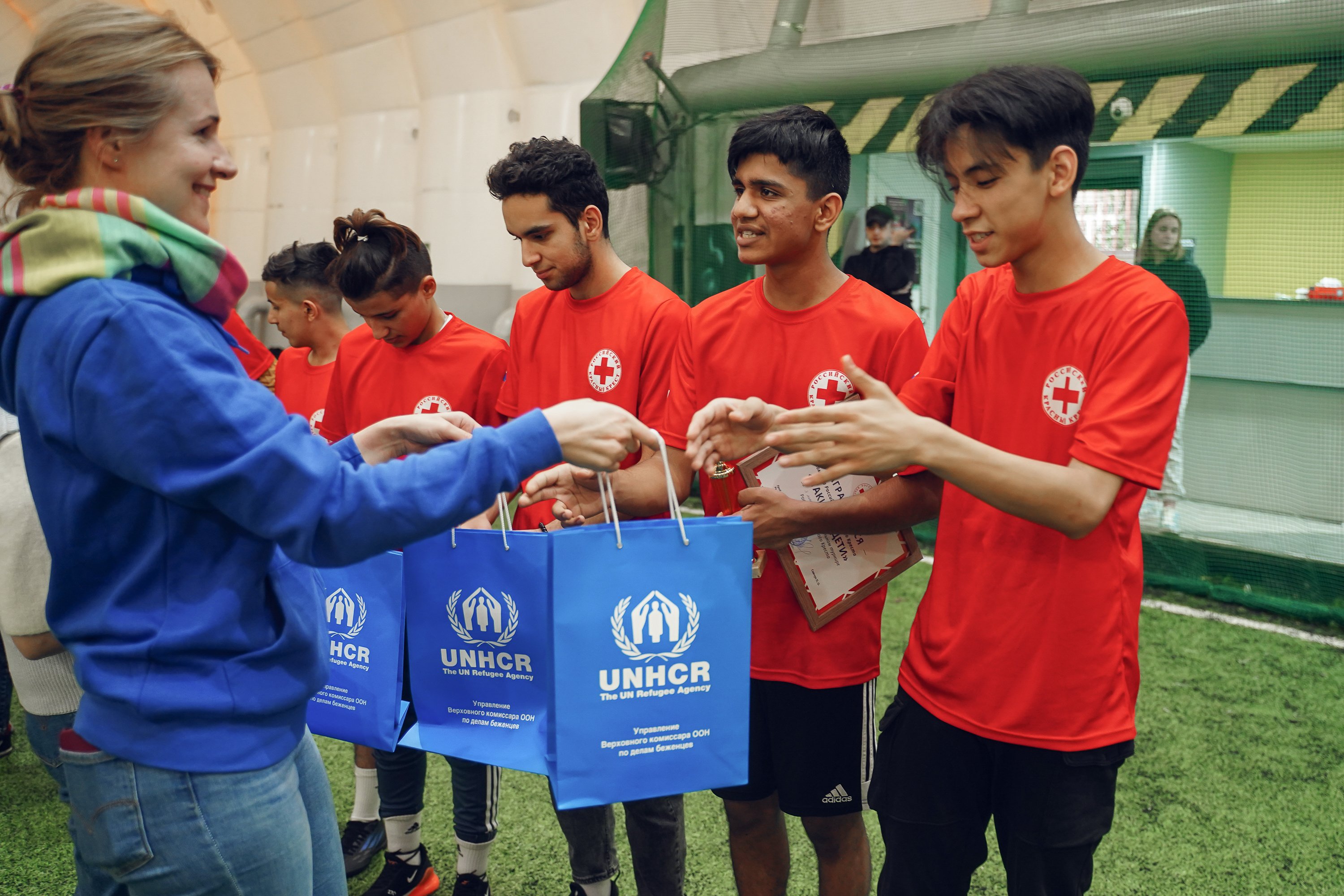 Команда "Такие же дети" на футбольном турнире Российского Красного Креста ©УВКБ ООН/Руслан Альтимиров