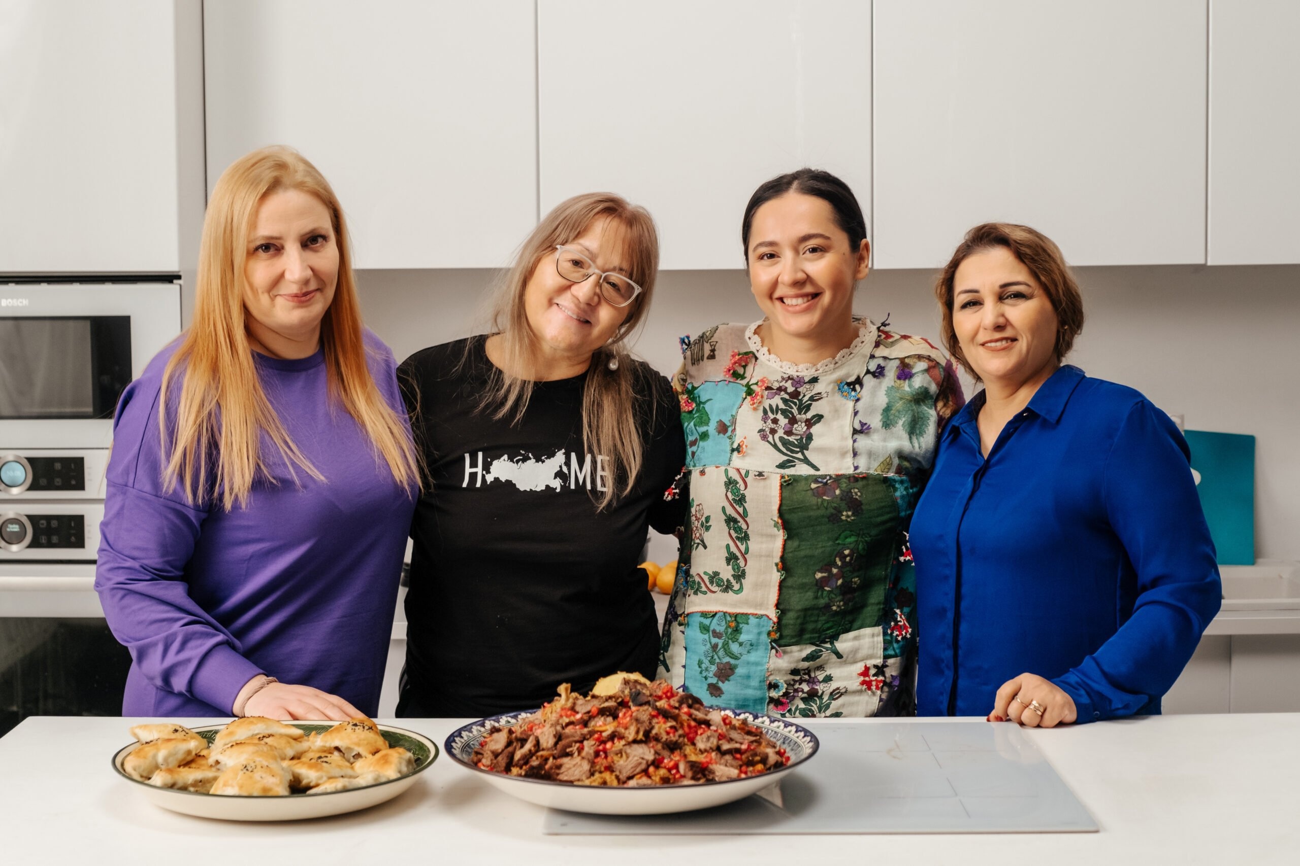 Федаа из Сирии, Наджиба и Манижа из Таджикистана, Асифа из Афганистана на съемках кулинарного проекта Агентства ООН по делам беженцев © УВКБ ООН / Руслан Альтимиров