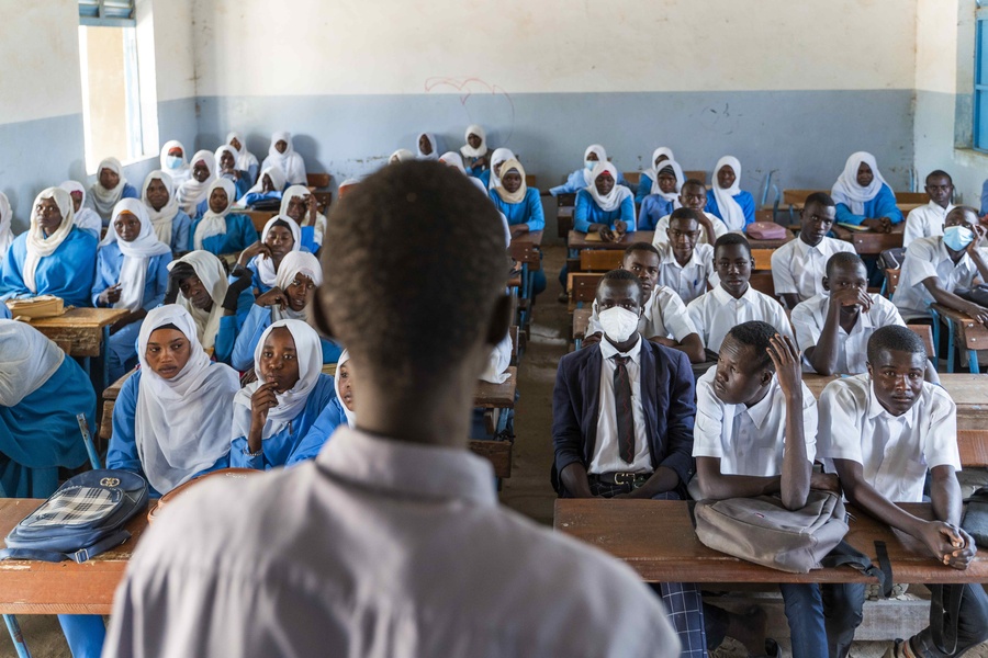 Суданские беженцы посещают занятия в общеобразовательной школе в лагере беженцев Фаршана на востоке Чада.
