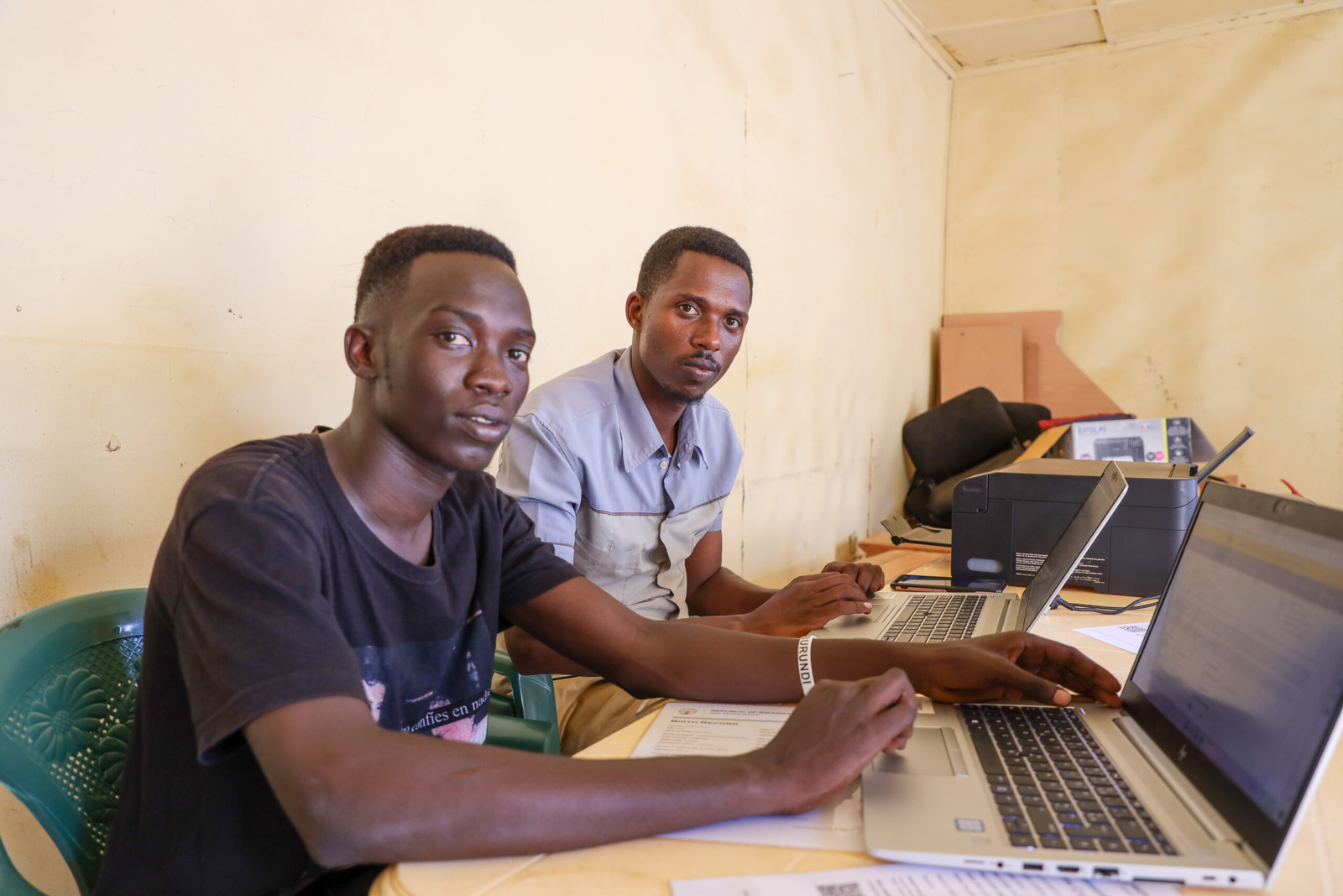 Dick Mugabo and Adronis Niyizontunga are two Burundian refugees who assist in providing these digital services. “For us it is simple as we know how to navigate the system, but not everyone does, so we are here to support other refugees in the camp access Irembo. We have over 100 new mothers coming here every month to get a birth record,” Dick explains.