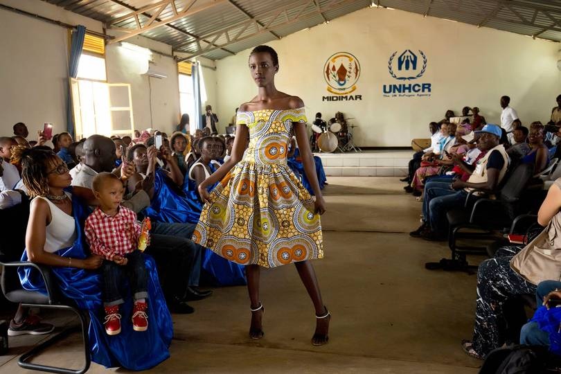 This is surreal. But amazingly so. I’m on a catwalk. Concrete floor, corrugated iron roof, music blaring, whooping crowd. I’m wearing a beautifully fitted, heavily patterned dress and a brilliantly clashing headscarf. This could be a show in a warehouse in New York’s Meatpacking district, or in one of London’s old covered markets. But it isn’t. I’m in a community centre. In Mahama refugee camp in Rwanda.