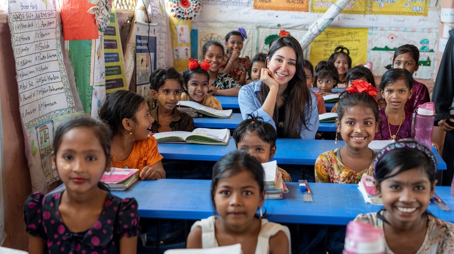 سفيرة المفوضية للنوايا الحسنة، أسيل عمران، خلال زيارتها الميدانية لمخيمات اللاجئين الروهينغا في بنغلاديش. ©UNHCR/Saikat Mojumder
