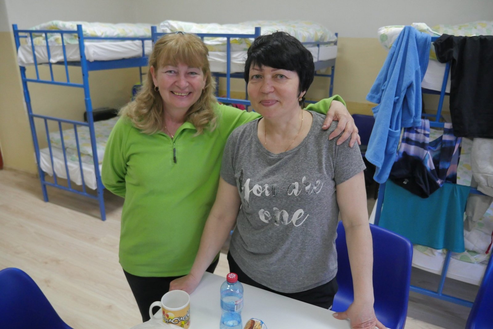 Antonina a Nataša sú čoskoro zásobené informáciami. Jeden z letákov UNHCR varuje v ukrajinčine pred možnými podvodmi. „Všetka humanitárna pomoc je bezplatná," zdôrazňuje. Dobrovoľníci ich dovedú k bezplatnému minibusu.
