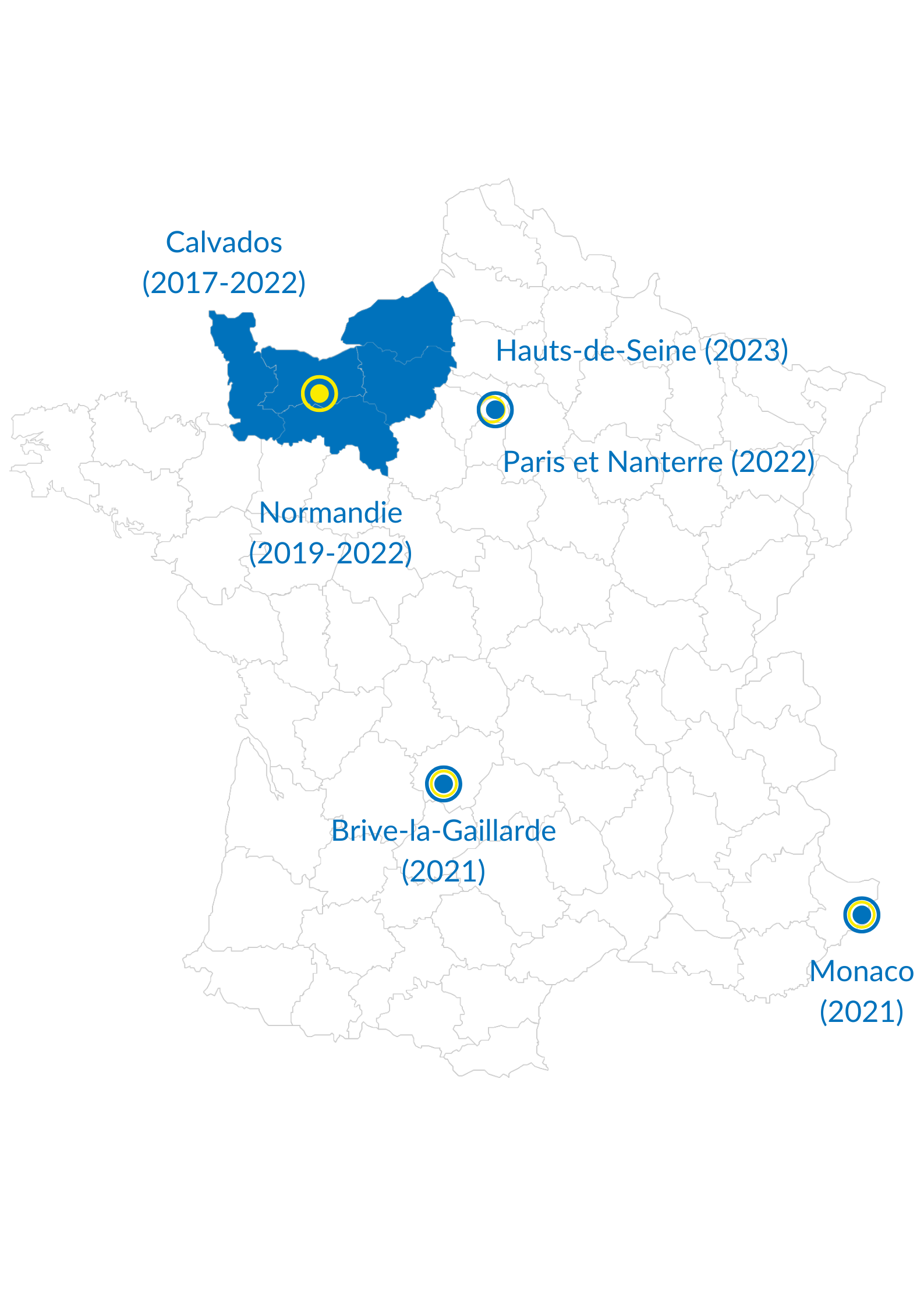 Si le projet s’est initialement développé en collaboration avec le Département du Calvados, dans le cadre du Prix Bayeux-Calvados-Normandie des correspondants de guerre, il s’est aujourd’hui étendu à de nouveaux horizons. En 2021, INTER’ACT s’est déplacé en Corrèze, à Brive-La-Gaillarde et également à Monaco pour la première fois. En 2022, la sixième édition d’INTER’ACT a eu lieu à Nanterre et à Paris dans les 18ème et 19ème arrondissements. En 2023, le programme INTER’ACT s’est également déroulé dans les Hauts-de-Seine, en Lot-Et-Garonne et en Dordogne. En 2024, les interventions se sont poursuivies dans l’Allier, à Monaco et dans l’Eure-Et-Loire.