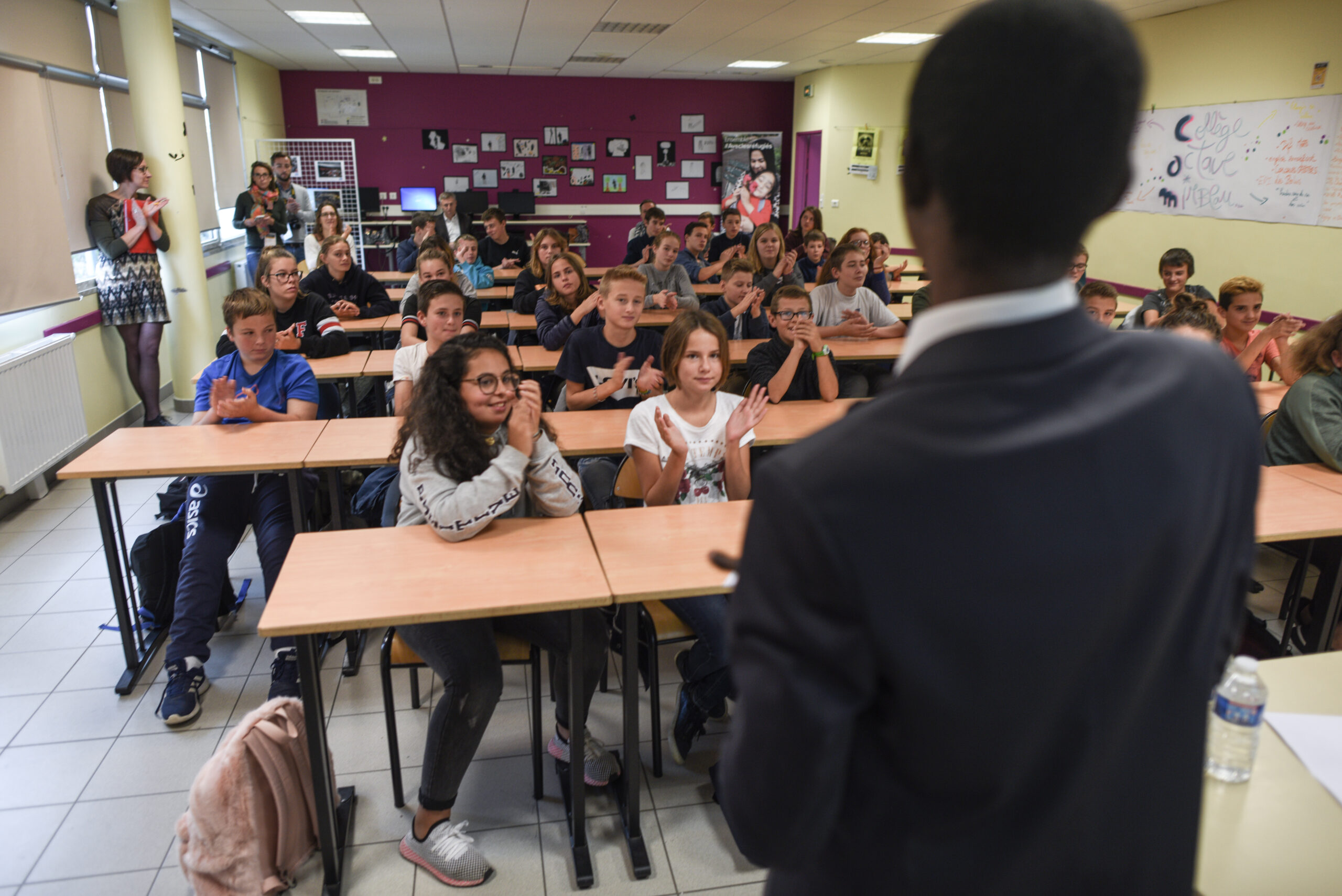 Certains collégiens n’avaient jamais rencontré de personnes réfugiées, d’autres ne savaient tout simplement pas ce qu’être réfugié signifie. Bien qu’il ait témoigné des épreuves rencontrées lors de l’exil ou à son arrivée en France, Azeez, d’un naturel positif, a inspiré de nombreux collégiens présents dans la salle.