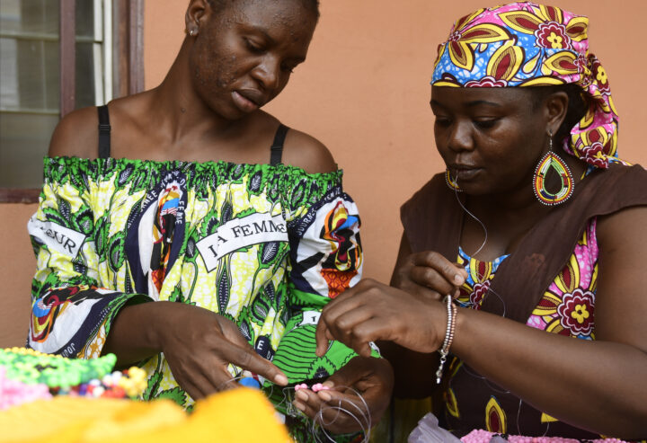 Cameroon. A CAR refugee trains displaced women in craft-making