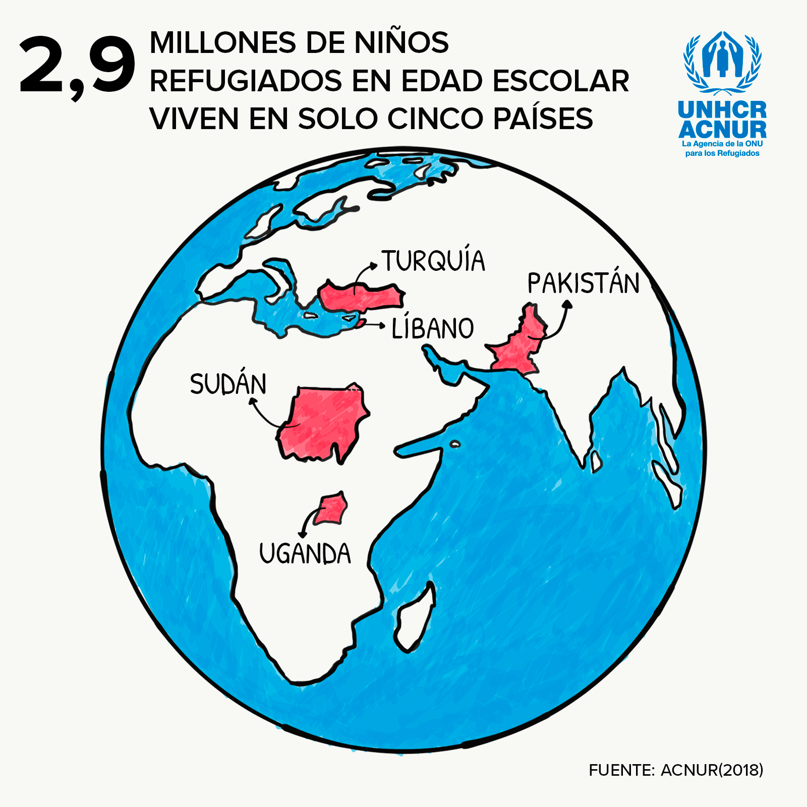 Hoy en día, alrededor de 3,7 millones de menores refugiados están sin escolarizar, más de la mitad de los 7,1 millones de menores refugiados en edad escolar.