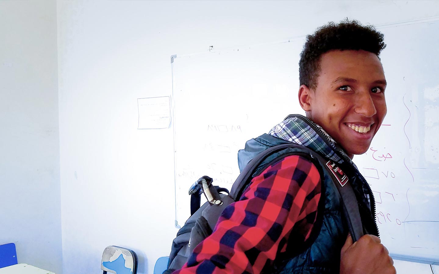 Alamuddin, 16, an unaccompanied child refugee from Ethiopia, was able to join an accelerated education literacy class in Yemen thanks to the Educate A Child programme. Three years on, his Arabic skills allowed him to enrol in the 7th grade in a national school. © SDF/MAJED AL-ZOMALY