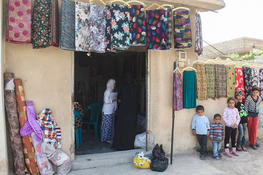 As the team continued to walk through the street, two middle-aged women working in a textile shop appeared to share their experience, needing to walk long distances a number of times a day to supply their homes with water, and having to resort to the help of their children at the cost of holding them back from school.