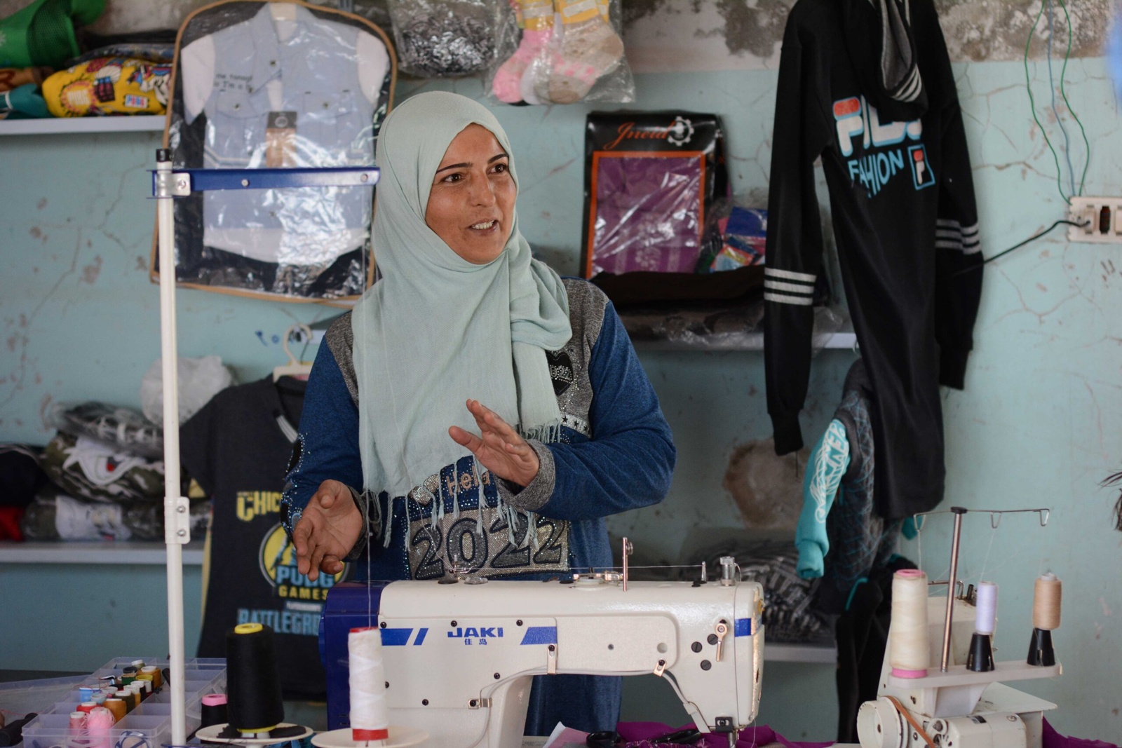 Samar, 39-year-old. Samar had returned with her family to their home in Herbanafse town in rural Hama in 2019. Samar explains to UNHCR’s team about her small business project in sewing clothes. © UNHCR