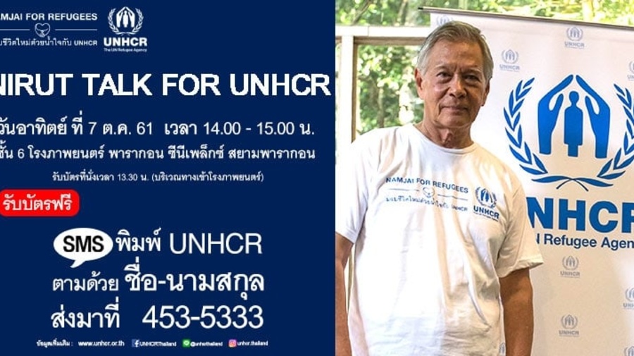 โดย NIRUT TALK FOR UNHCR จะจัดขึ้นในวันอาทิตย์ที่ 7 ตุลาคม 2558 ที่พารากอน ซีนีเพล็กซ์ ชั้น 6 สยามพารากอน เวลา 14.00-15.00 น. สำหรับผู้ที่สนใจร่วมฟัง สามารถรับบัตรเข้างานฟรีโดยไม่เสียค่าใช้จ่าย เพียงแค่ส่ง SMS พิมพ์ UNHCR ตามด้วยชื่อ – นามสกุล แล้วส่งมาที่ 453-5333