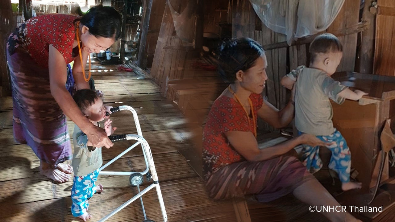 Dah Hsi Poe was born with Down’s Syndrome at a temporary shelter in Thailand. At first, he was unable to move, but with the frequent physiotherapy offered by UNHCR and his mother’s encouragement, Dah Hsi Po can now walk unaided for a short distance. His mother is grateful to the donors who have helped to protect Dah Hsi Poe by providing medical support and giving him a better chance of survival. She will continue to fight and encourage her child as he learns to walk.