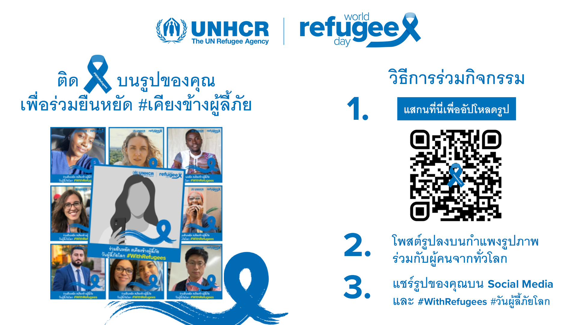UNHCR จัดแคมเปญพิเศษเพื่อขับเคลื่อนความร่วมมือด้วยความเป็นน้ำหนึ่งใจเดียวกันจากทั่วโลกเพื่อผู้ลี้ภัย เพียงอัปโหลดรูปภาพของคุณลงบนเฟรมวันผู้ลี้ภัยโลกโพสต์ลงบนกำแพงรูปภาพ และแชร์ลง Social Media พร้อมติด #WithRefugees #วันผู้ลี้ภัยโลก เพื่อร่วมยืนหยัดเคียงข้างผู้ลี้ภัยไปพร้อมกับผู้คนจากทั่วโลก