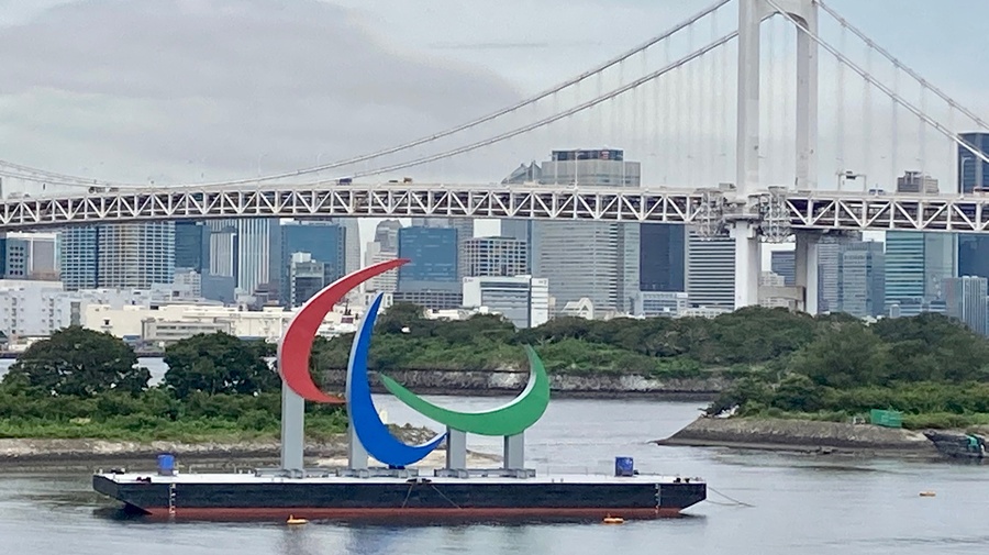The Paralympic Symbol installed for the Tokyo 2020 Paralympic Games at Odaiba Marine Park, Tokyo.