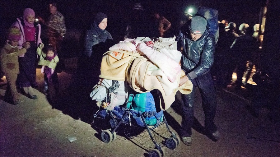 A group of Syrian refugees cross at night into Jordan. They make their way by foot from the Syrian governorate of Daá'ra carrying what they can. It's a risky journey.