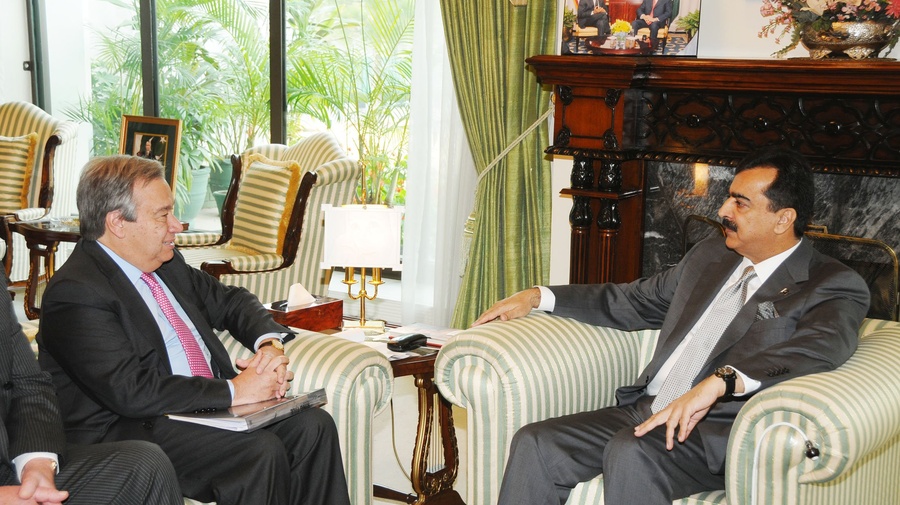 High Commissioner for Refugees António Guterres meets Prime Minister Yousuf Raza Gilani to discuss the new regional strategy earlier today