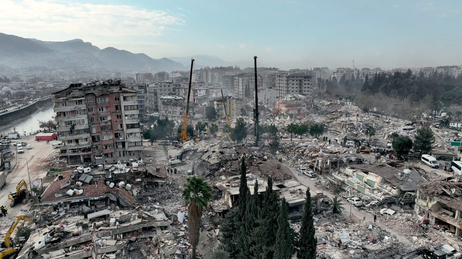 Bird’s-eye view of the destruction in Hatay, one of the most affected provinces of the earthquakes that hit Türkiye.