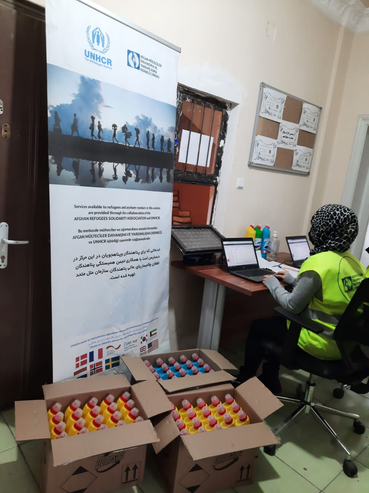UNHCR, bu girişimde dezenfektanların ve sabunların Türkiye’ye dağıtımı için partnerleriyle iş birliği yapıyor. UNHCR’nin yerel ortaklarından Afgan Mülteciler Dayanışma ve Yardımlaşma Derneği (ARSA), ihtiyaç tespitini ve ürün dağıtımını Kayseri’deki ofislerinde gerçekleştiriyor. Şimdiye kadar 1.000 haneye ARSA aracılığıyla hijyen kiti dağıtıldı.