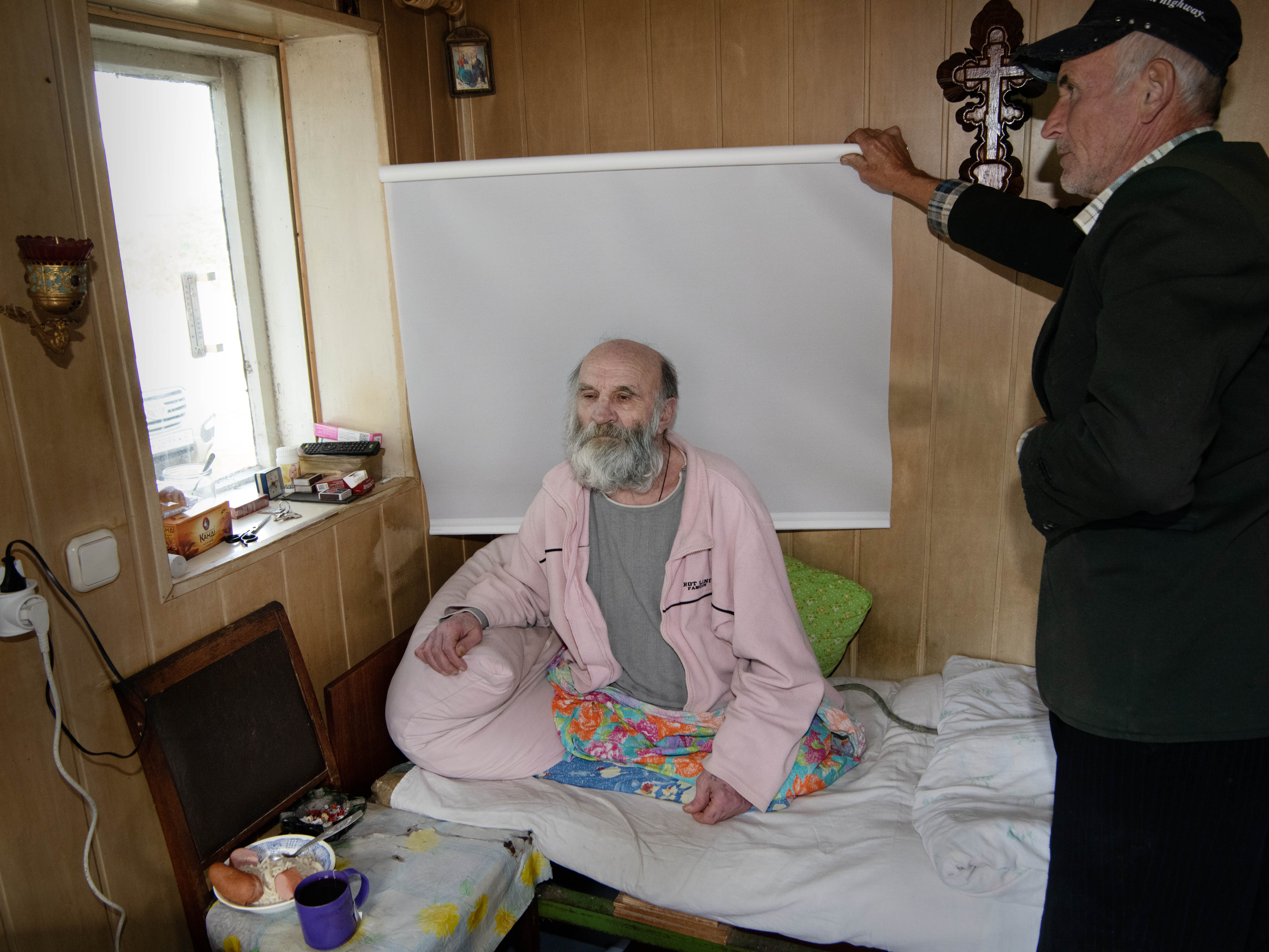 Serhii Kravchenko is in his shelter in a church in the Donetsk region. His identification documents are not valid and he cannot use health care and other basic services. Photo @UNHCR/Oleksandr.Chelmenyov" />