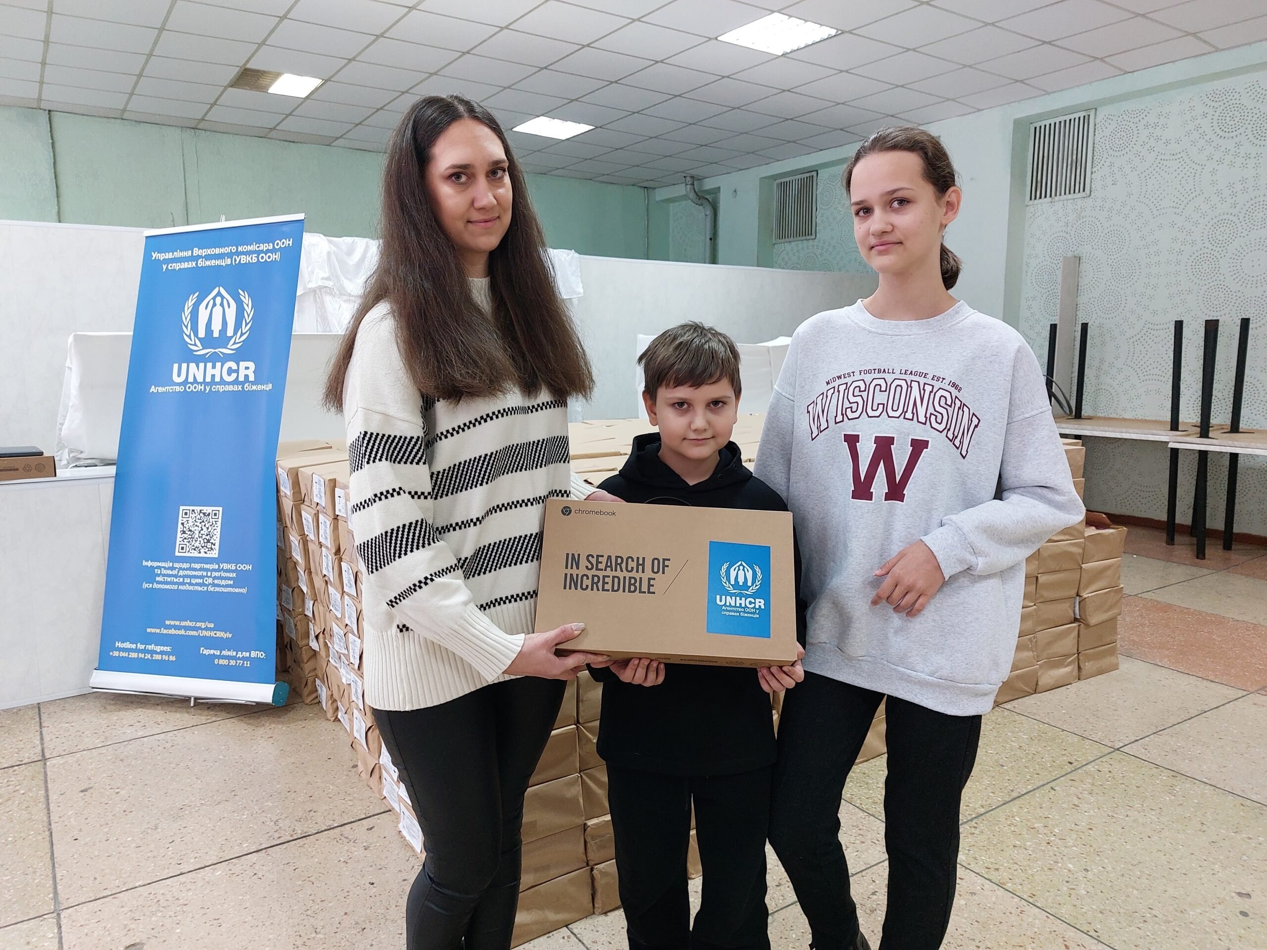 To support children in Ukraine to continue their education amidst the devastating war, UNHCR, the UN Refugee Agency, distributed 1,500 Chromebooks to the Departments of Education in the most affected areas. The laptops equipped with Ukrainian keyboards were then provided directly to schoolchildren to help them attend online classes, as many schools remain physically closed due to the ongoing hostilities and dire security situation.
