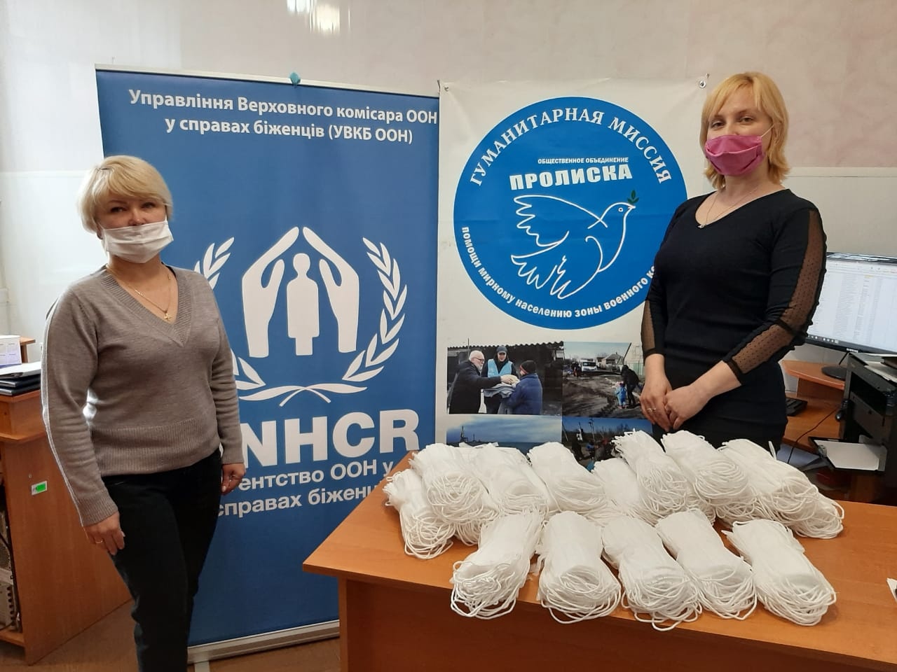 Protective masks were sewn by local volunteers and materials for their production were provided by the Humanitarian Mission "Proliska" with the financial support of UNHCR in Ukraine.