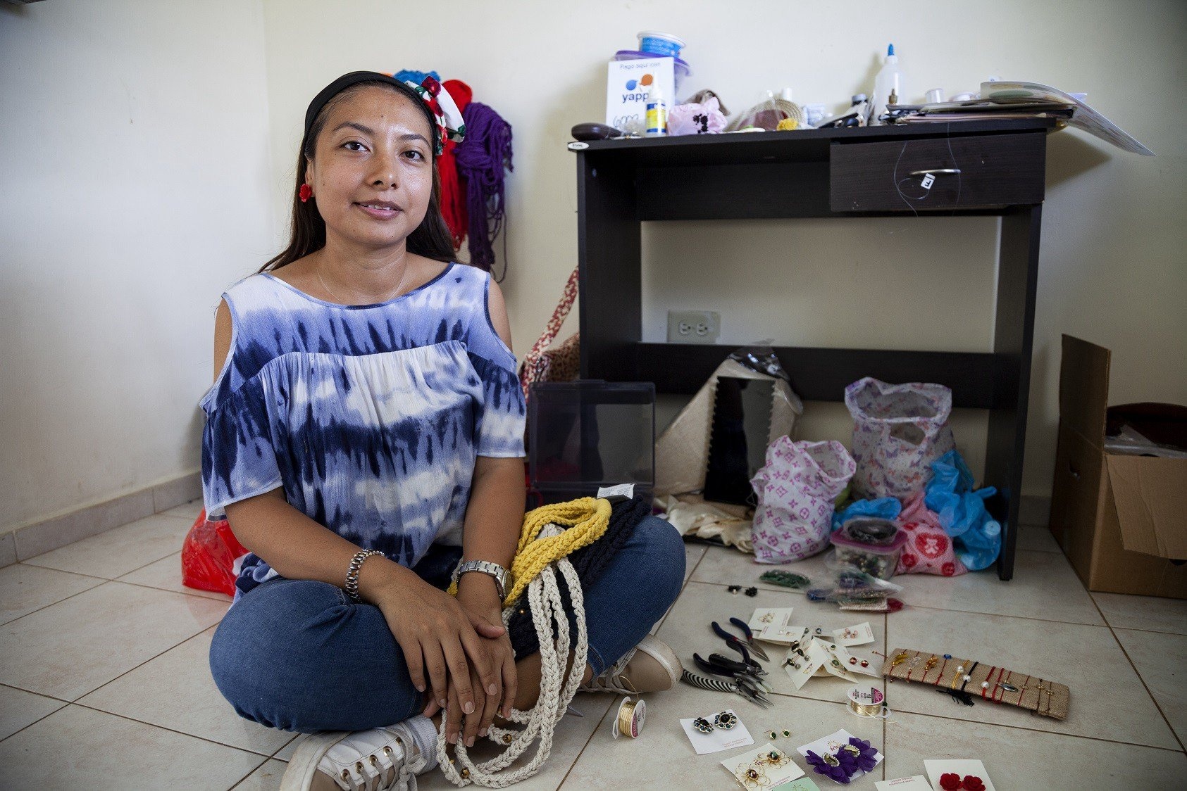 Heily Alemán, 29, is a Nicaraguan asylum seeker in Panama and the proud owner of Artesol; a store selling jewelry and eco-friendly purses.