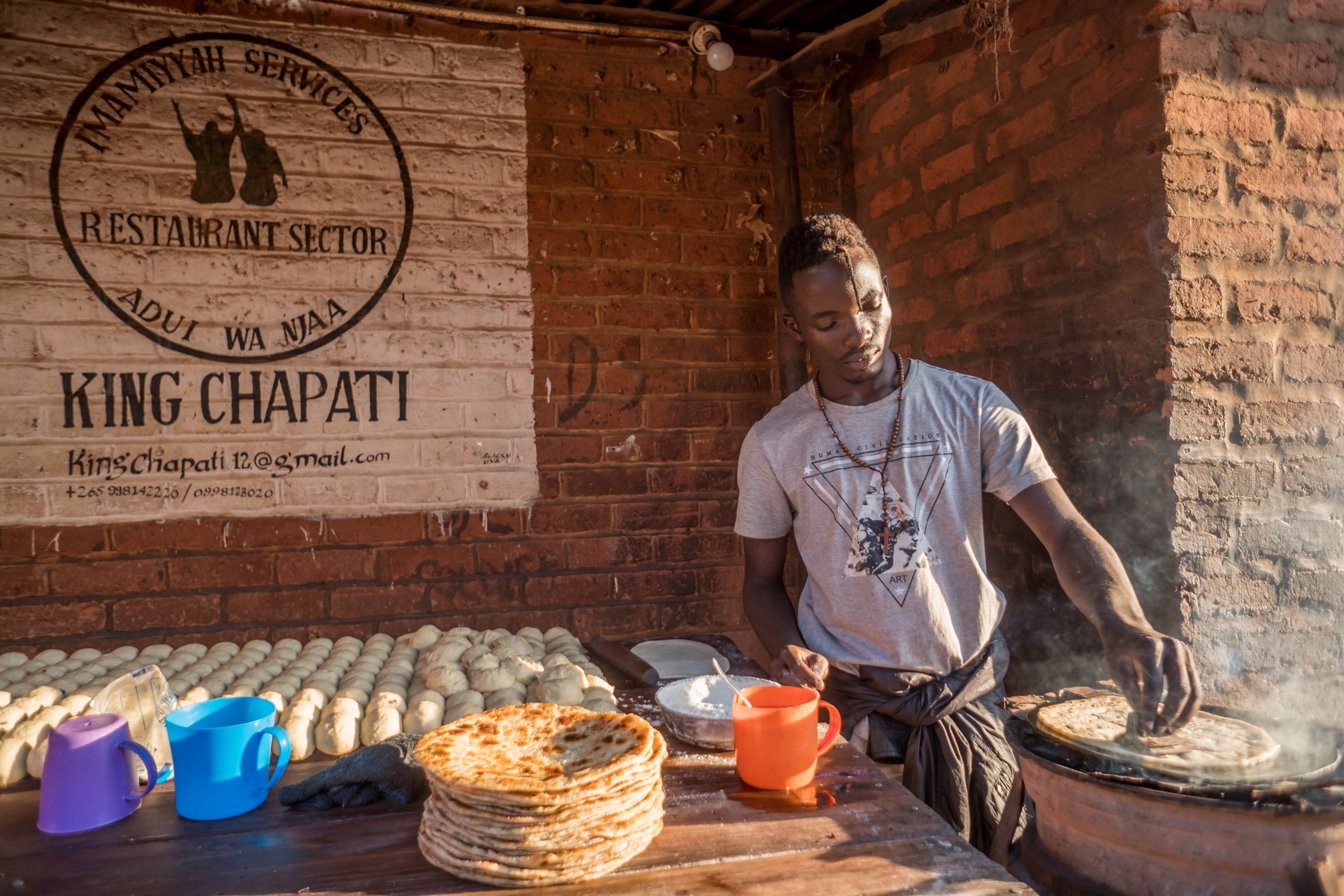 The chapati business was initiated by a young refugee, entrepreneur called KING in Dzaleka refugee camp. He expanded his business to other major towns in Malawi. Since this type of bread is only found in Dzaleka refugee camp, people travel long distances to buy it.