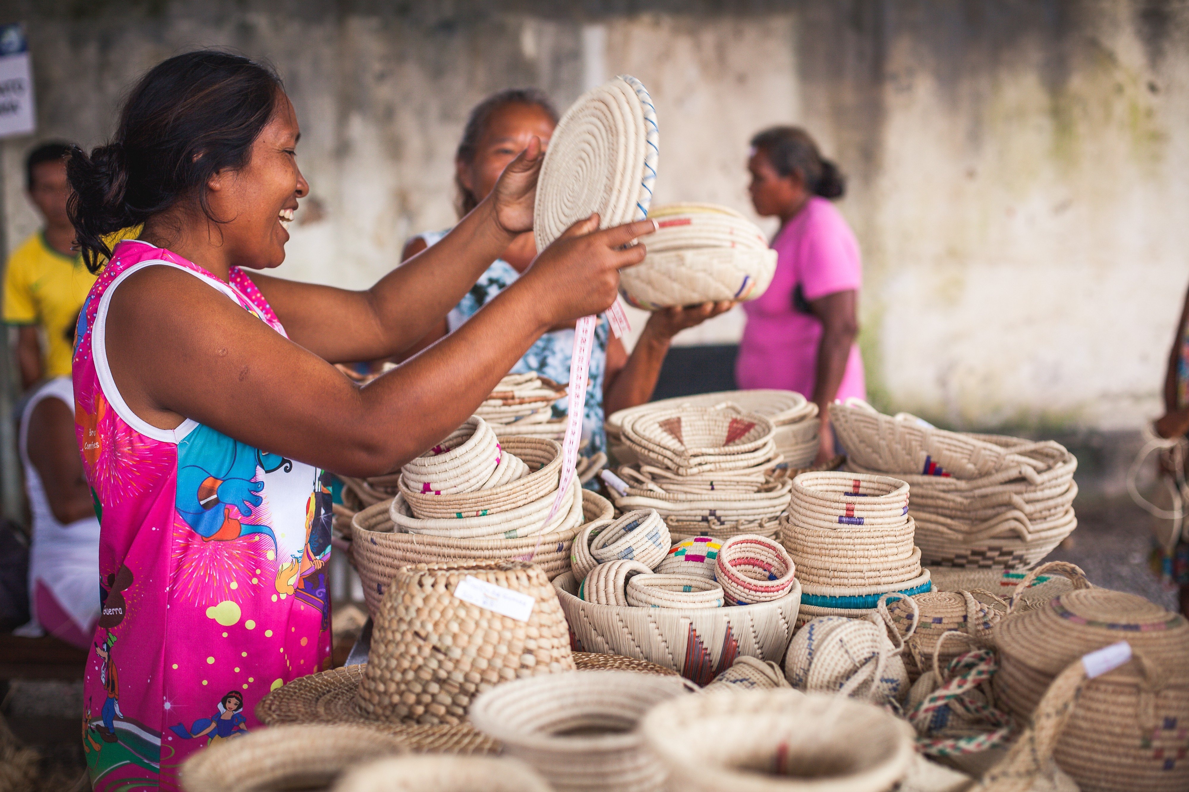 Indigenous Warao population from Venezuela currently living in a shelter in Roraima and Amazonas states, in Brazil, transform Amazon straw (Buriti) into beautiful handicrafts to be sold in São Paulo.