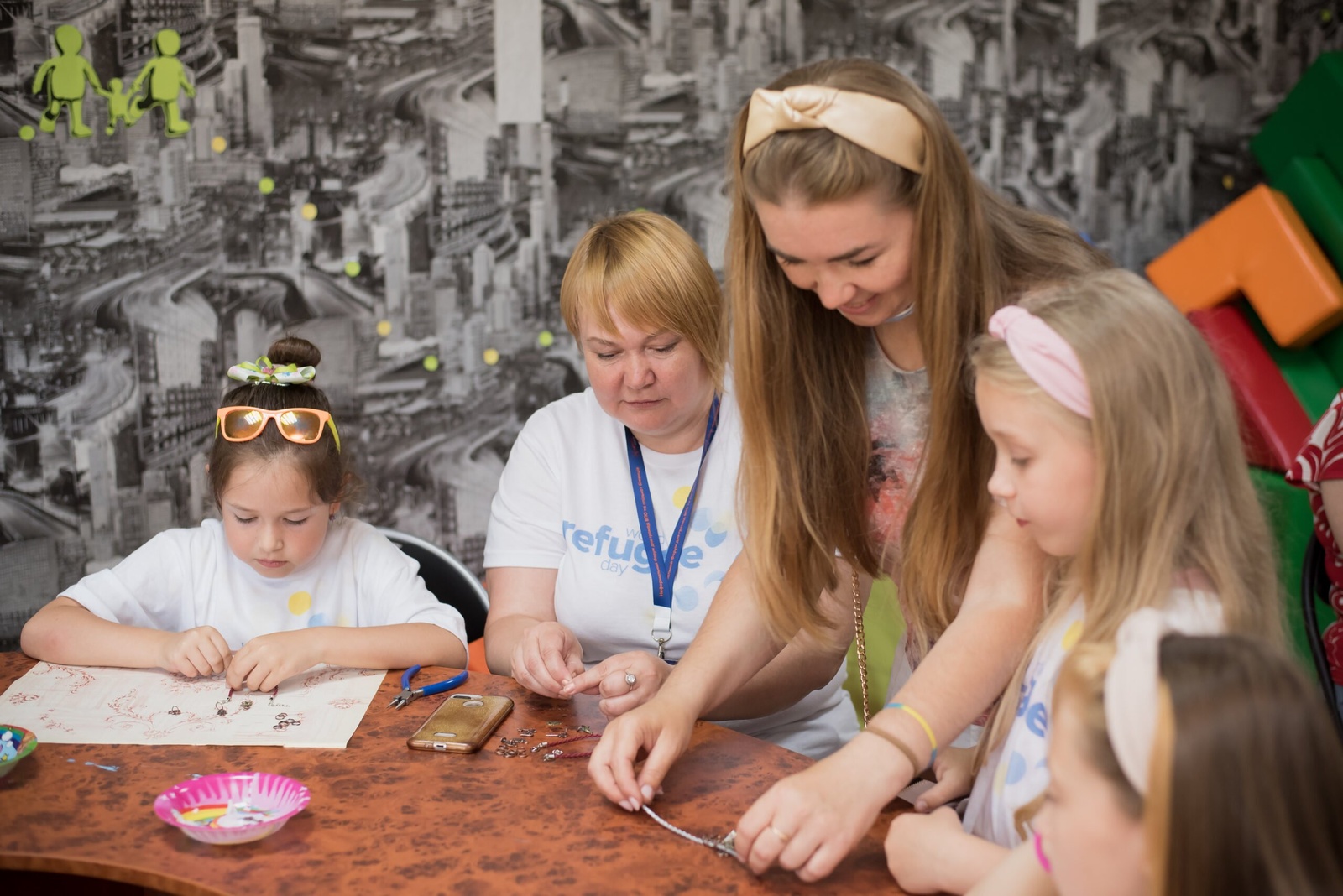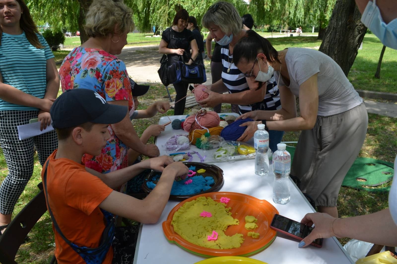 The program of the event included planting flowers on the alley in "Dove of Peace" art workshop for children and parents, meeting with the project manager of "Mamochka School", making a charm bracelet and holding a tea ceremony.
