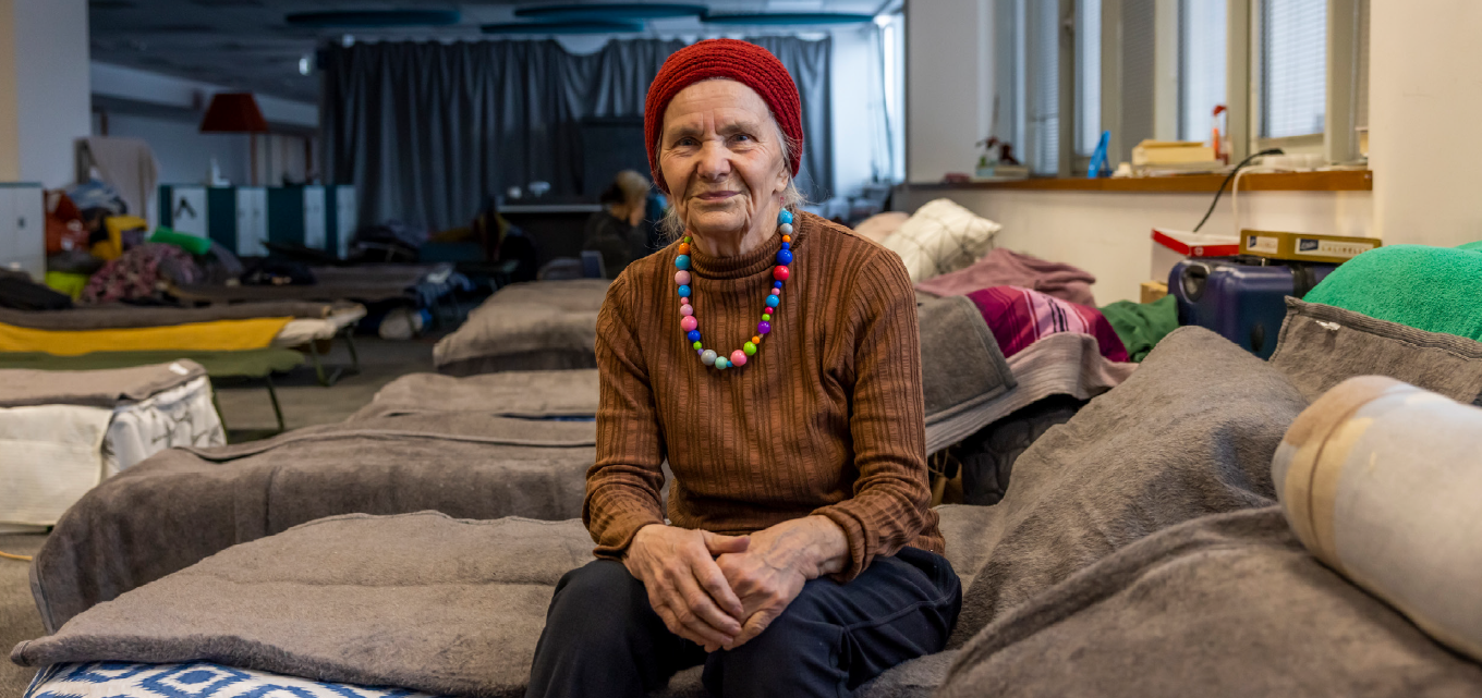 84-річна Валентина сидить на своєму ліжку в колективному центрі в Кракові. Валентина приїхала до Польщі з України з донькою та онукою. © УВКБ ООН/Анна Лімінович