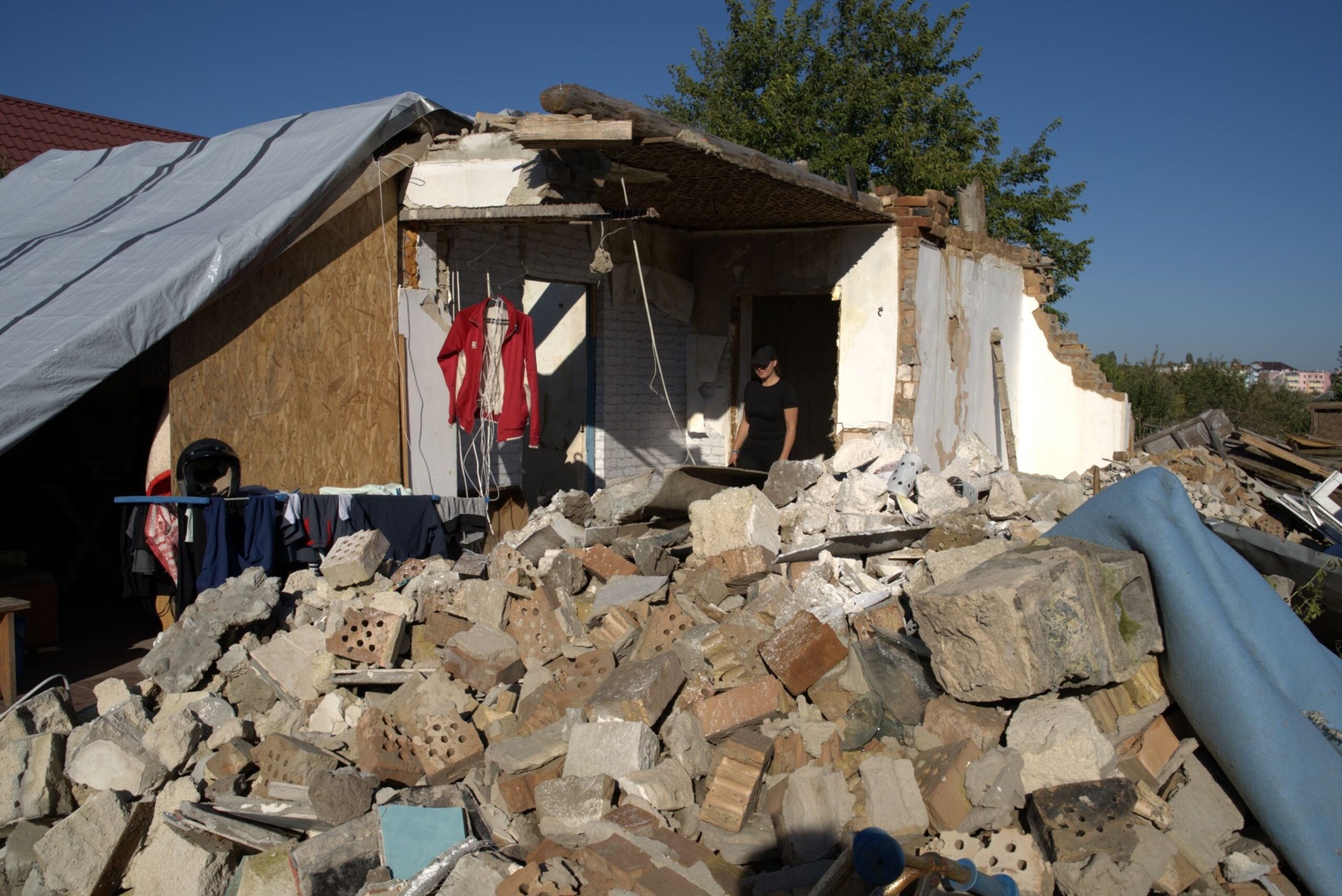 Родини на той час не було в селі, оскільки вони переїхали на два місяці на захід України в пошуках безпечного місця. Коли вони повернулися, їхнє подвір’я було засипане щебенем та пилом. «На місці купи цегли тут була наша спальня і наша кухня, – показує Оксана. – Нам знадобилося ціле літо, щоб прибрати подвір’я».