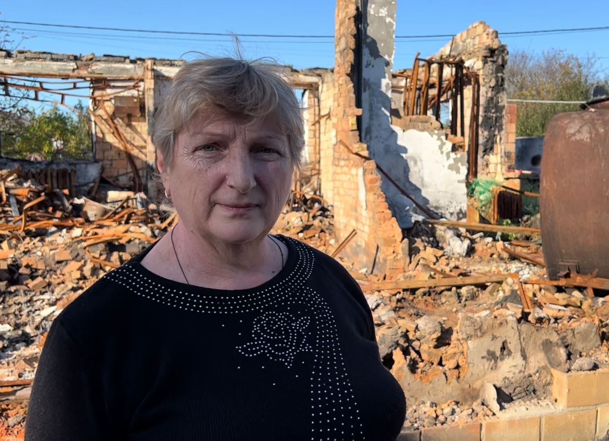 Надія стоїть біля руїн свого будинку. Фото: УВКБ ООН/Вікторія АндрієвськаПеріод після втрати дому був для Надії важким. Вона зупинялася в кількох місцях, у друзів чи родичів. Вона намагалася продовжувати активну діяльність і була волонтером у районі, який був звільнений, і де місцеві жителі потребували гуманітарної допомоги. Близько місяця вона готувала теплу їжу для переселенців, які втратили домівки.
