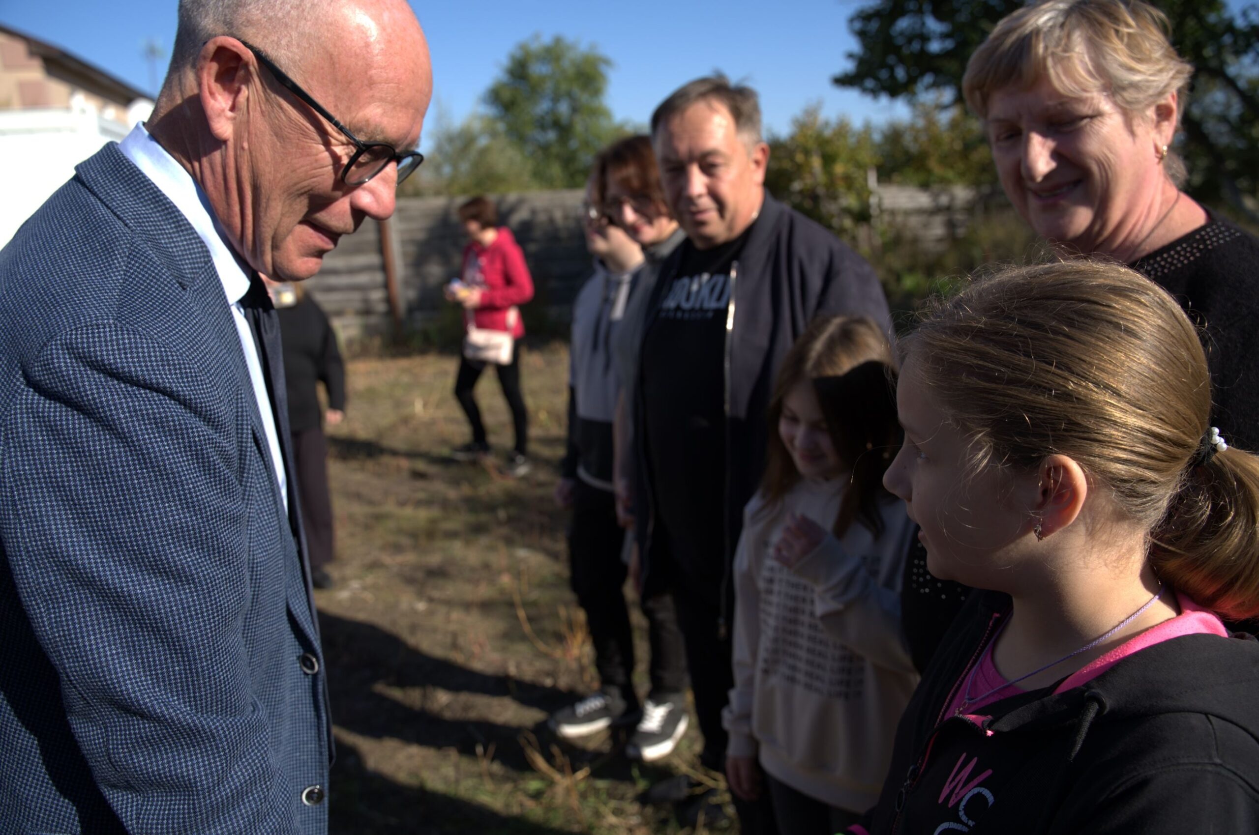 Під час візиту до Бузової 7 жовтня пан Посол Оле Егберг Міккельсен, Посол Королівства Данія в Україні, зустрівся з Надією та її сім’єю, які отримали два з 95 модульних будинків, наданих Королівством Данія через житлову програму УВКБ ООН, щоб допомогти тим, чиї будинки були зруйновані або серйозно пошкоджені через обстріли, щоб вони мали безпечне та тепле місце для проживання цієї зими. Фото: УВКБ ООН/Вікторія Андрієвська