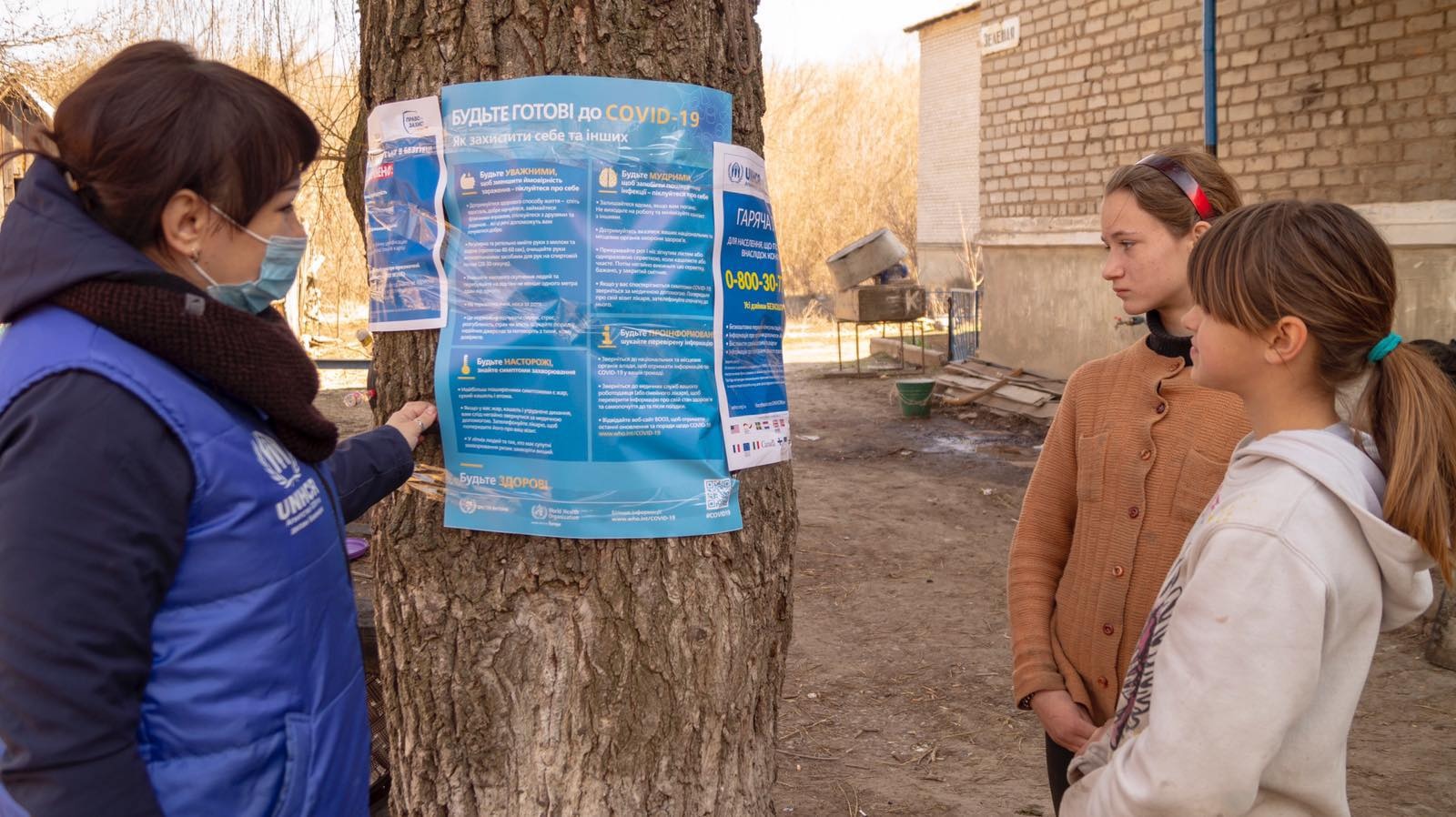 Плакати з профілактики COVID-19 на підконтрольних уряду територіях (ПУТ): УВКБ ООН завершило розміщення 200 плакатів щодо профілактики COVID-19 у селах поблизу лінії розмежування. УВКБ ООН також встановило плакати, що інформують мешканців про останні зміни законодавства, пов'язаного із COVID-19. Плакати розробили колеги із НУО «Право на захист» (R2P). Загалом УВКБ ООН та її партнер - Гуманітарна місія «Проліска» - дісталися до 70 сіл, розташованих поблизу лінії розмежування, та 80 сіл у Донецькій та Луганській областях на ПУТ та розповсюдили 550 плакатів та 24 тисячі листівок щодо попередження інфікування коронавірусом.