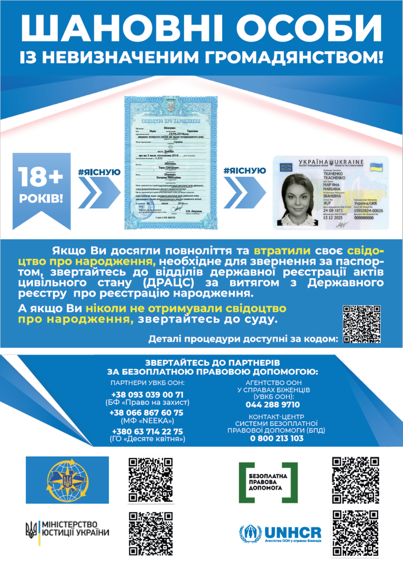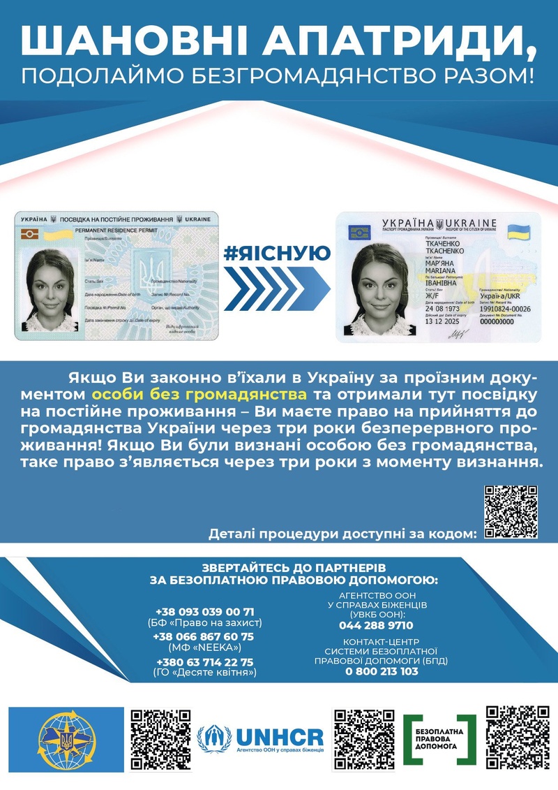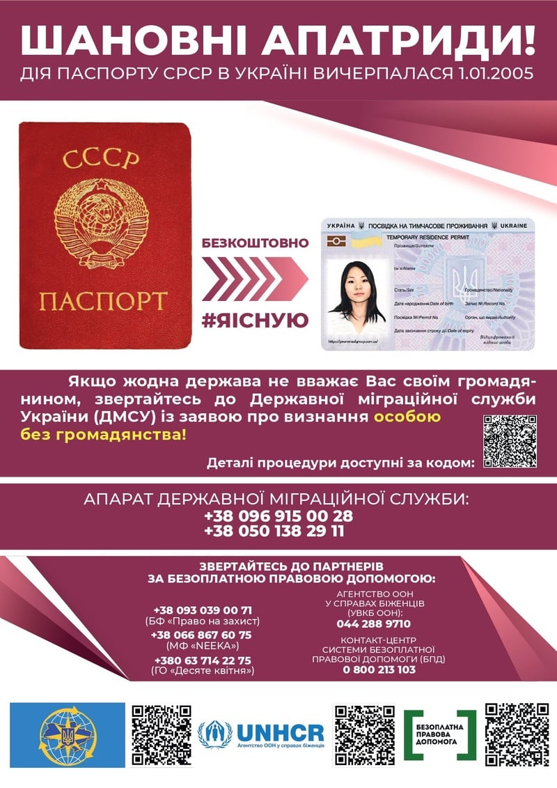 З червня 2017 року по червень 2022 року (61 місяців) партнери УВКБ ООН: МФ «NEEKA», БФ «Право на захист» та ГО «Десяте квітня» виявили та надали правову допомогу/представництво в судах, органах ДРАЦС, ДМСУ та консульствах країн СНД у Чернівецькій, Донецькій, Дніпропетровській, Закарпатській, Київській, Львівській, Луганській, Одеській, Харківській областях: 3,422 недокументованим особам. Серед них: