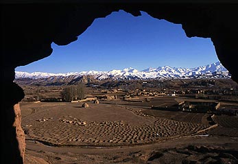 The view of the Bamiyan plain from the caves which shelter uprooted Afghans.