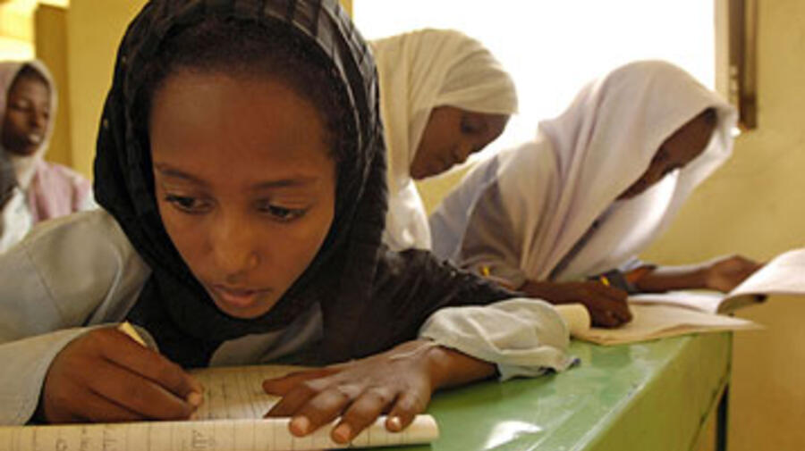 Schoolgirls in a classroom built in Sudan by UNHCR for Eritrean refugees. Former US President Bill Clinton has urged people to support UNHCR's campaign to ensure an education for all refugee children.