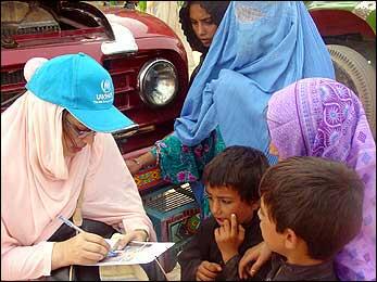 In view of cultural sensitivities that do not allow Afghan women to unveil themselves in front of men, UNHCR has hired women operators like Fitana to process the refugee women and children.
