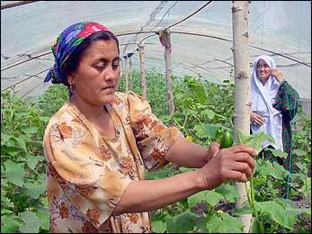 The micro-finance approach has become a popular tool in Tajikistan to reintegrate victims of the civil war and raise their incomes so they are self-sufficient. Outside the city of Kurgan Tube, the regional centre south of Dusti, a group of women have successfully started a business, with micro-credits, to provide fresh vegetables earlier in the season than big producers.
