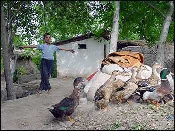 In Wakhsh, ducks purchased under a UNHCR-supported micro-credit project help supplement the income of returnees.